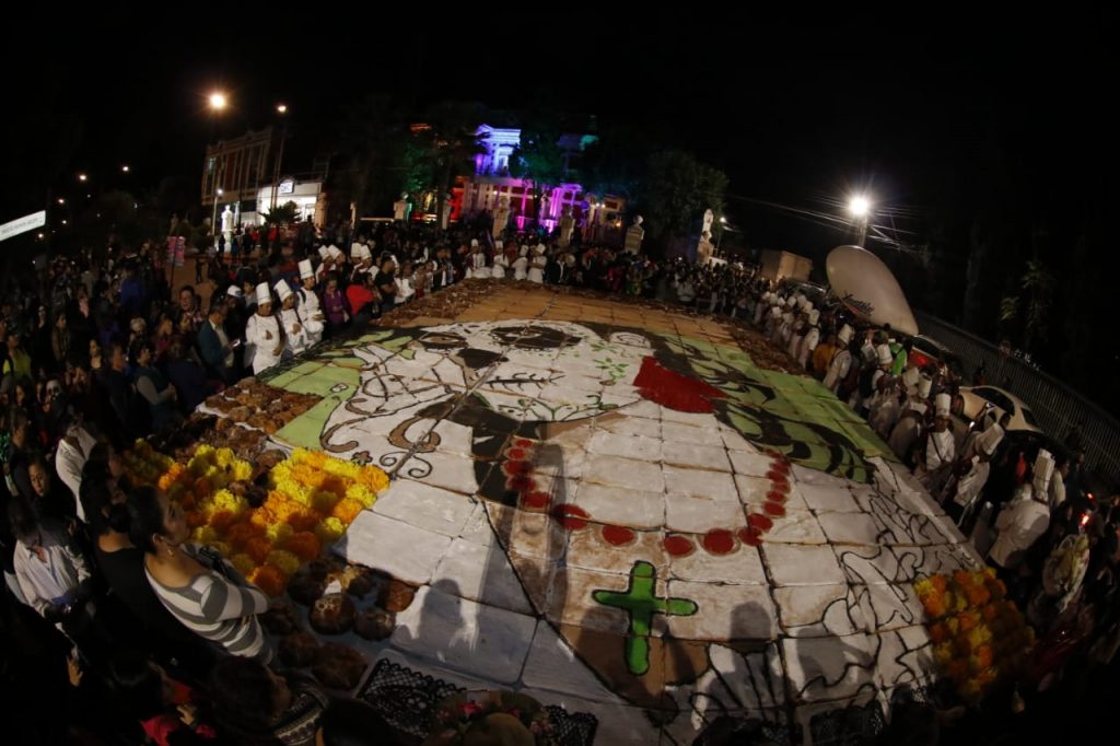 “Quiero destacar y agradecer la participación de los alumnos de Gastronomía de la Universidad Vizcaya de las Américas, pues el pan de muertos de 15 metros en forma de catrina fue horneado con mucho cariño por ellos y para ustedes”, enfatizó el Alcalde.