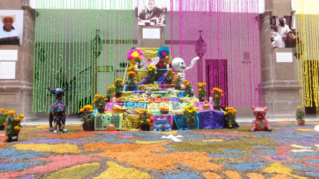 «Los invitamos. El altar de muertos se inauguró esta mañana (jueves) aquí en el patio central del Palacio de Gobierno y estará abierto al público durante todo el mes de noviembre», compartió en entrevista con medios, Sandra Abasolo, de la dirección de Animación Cultural de la Secretaría de Cultura.
