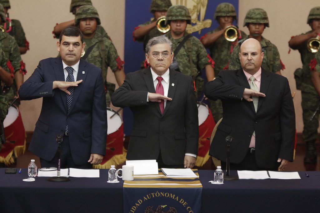 En presencia funcionarios de las tres Unidades de la UA de C, estudiantes, docentes, trabajadores, así como de los alcaldes Alfredo Paredes López de Monclova, Enrique Soto Ojeda de Castaños y Florencio Siller Linaje de Frontera, Toledo Aguilar presentó los resultados del primer año de trabajo desde la Coordinación de Unidad Norte.