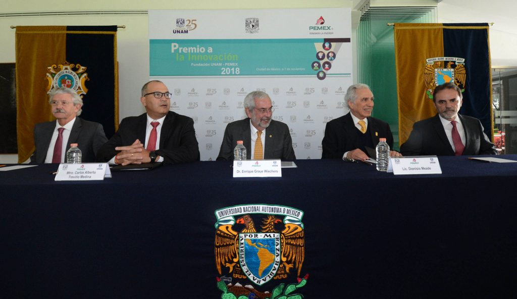 Al presidir la entrega del Premio a la Innovación Fundación UNAM-Pemex 2018, destacó el trabajo conjunto de esta casa de estudios con Pemex, pues ambas instituciones tienen un mismo fin: contribuir al desarrollo del país.