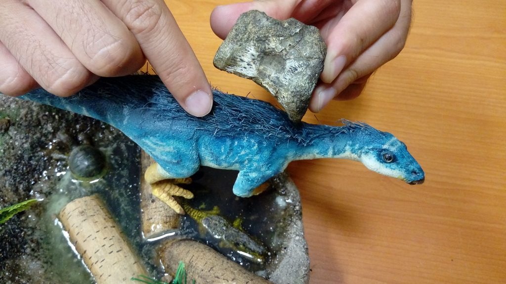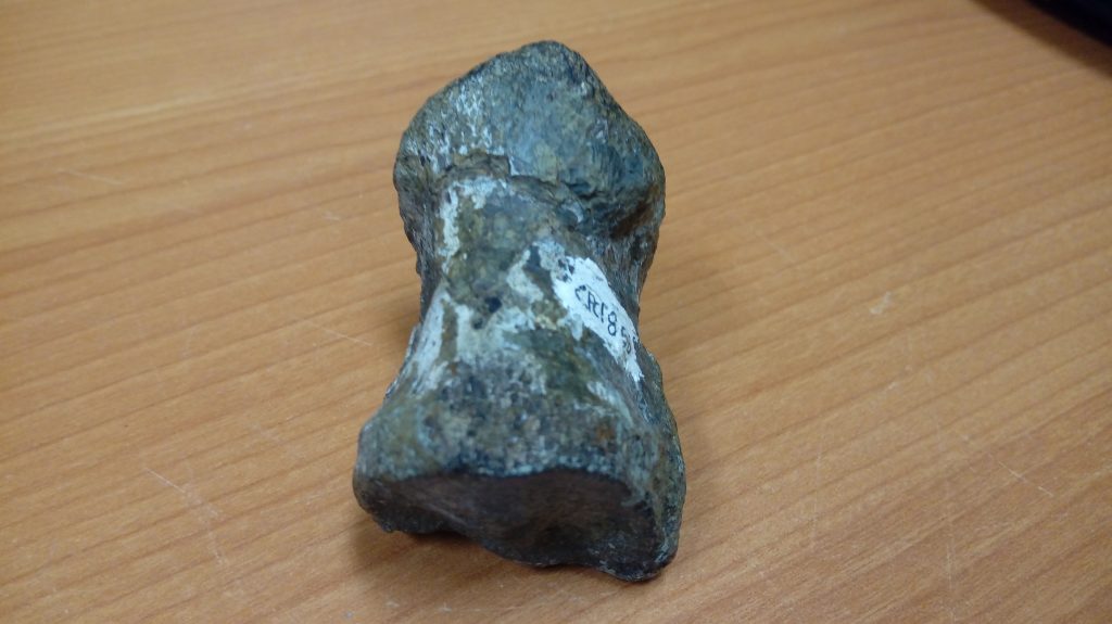 “Como elementos tenemos un diente y una vértebra. La vértebra en campo no fue tan fácil determinarla como algo nuevo, cuando la vi creí que era algo más común. Ya en el laboratorio comenzamos a ver qué características tenía, como la unión entre vértebras que tiene una pequeña muesca que la hace extraña, y vi que era algo diferente. Posteriormente, Lucía Alfaro Ortiz encontró en el micrositio el diente. Ya teníamos la idea de que el diente era de alguno de los dinosaurios, con características especiales, que nos faltaban identificar en Coahuila, de acuerdo al ecosistema”, explicó el doctor Héctor Rivera Sylva, jefe e investigador del Departamento de Paleontología del Mude.