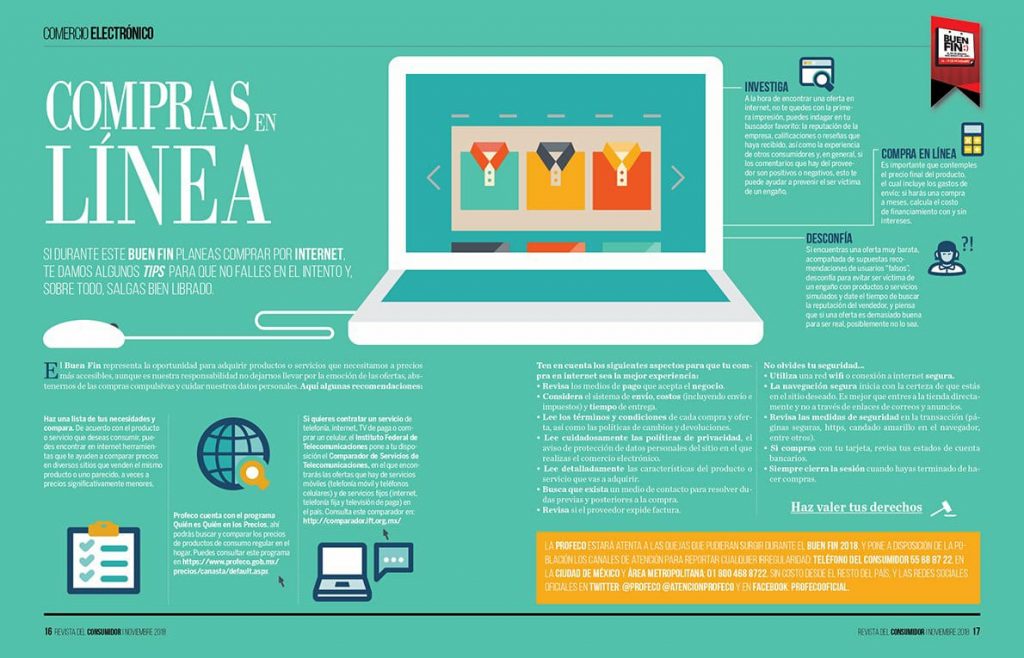 *Compra en sitios conocidos de buena reputación. Para ellos la Profeco cuenta con una herramienta de Monitoreo de Tiendas Virtuales (MTV), que informa si la tienda cumple con lo dispuesto por la Ley Federal de Protección al Consumidor.