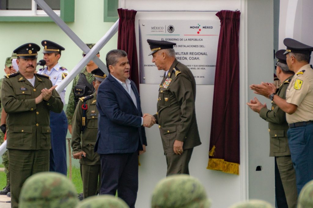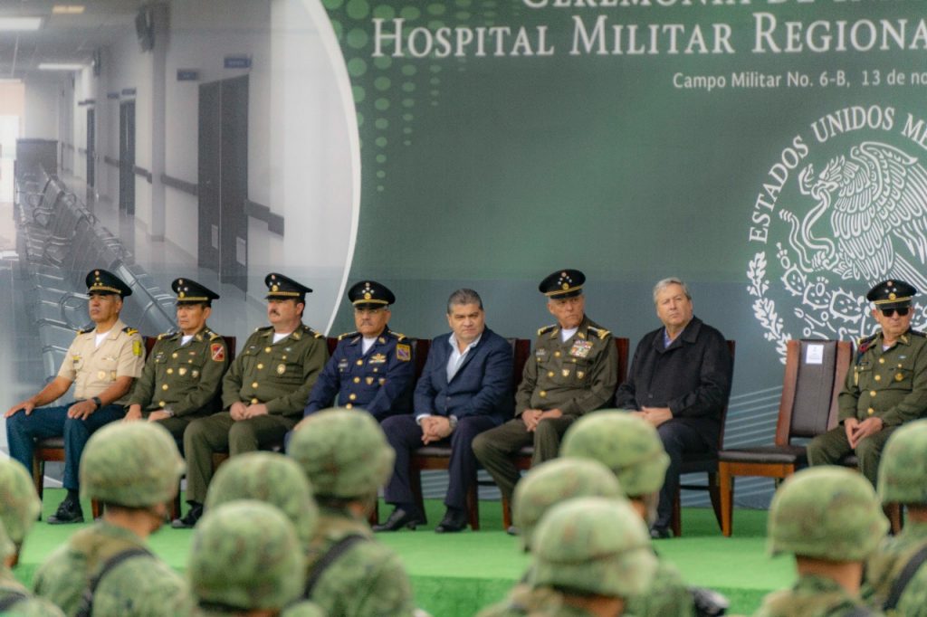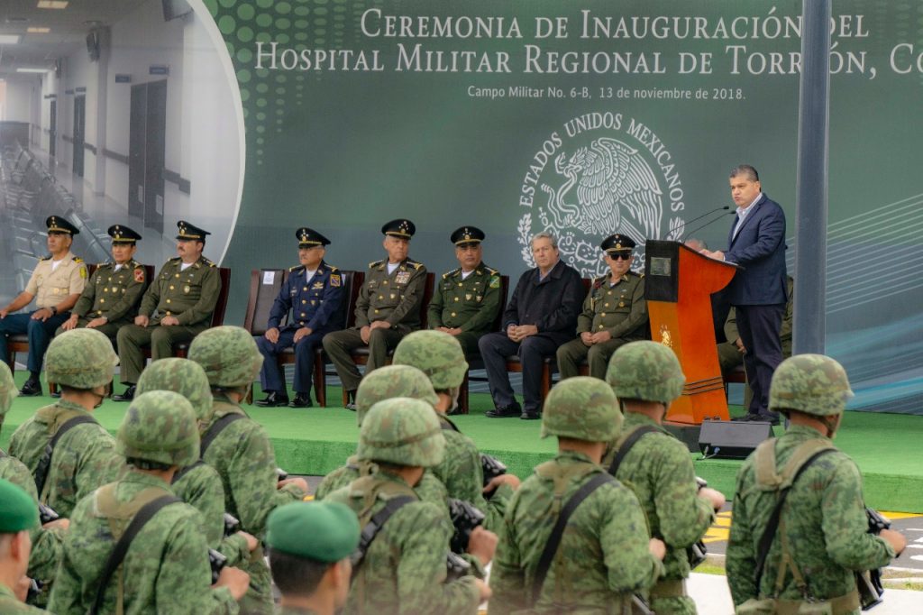 Riquelme Solís expresó que la apertura de este nuevo nosocomio en Torreón es una obra propicia que reitera el firme compromiso que tiene con el bienestar de los soldados, y oportunidad para que todos los coahuilenses pronuncien en voz alta “Gracias al Ejército Nacional”.