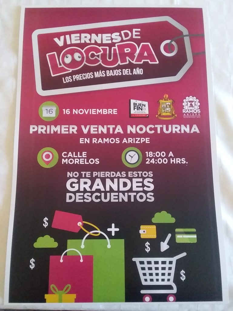 Este evento dará inicio este próximo 16 de noviembre en punto de las 6 de la tarde, para darle paso a la primera venta nocturna organizada en Ramos Arizpe, la cual finalizará el mismo viernes a la media noche y continuara con sus actividades el día sábado y domingo en horario normal.