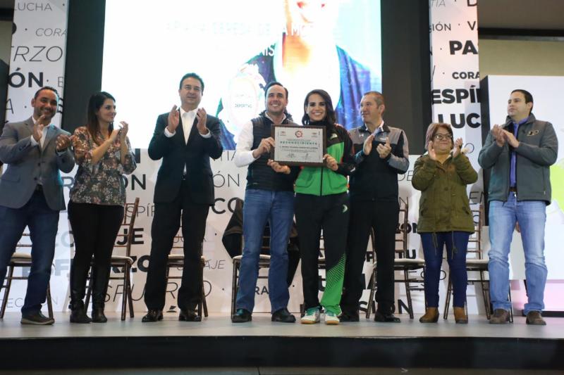 En el evento, Jiménez Salinas, además de reconocer la trayectoria y el esfuerzo de Ariana Yolanda Cepeda, ganadora del premio al Mérito Deportivo, también entregó reconocimientos a 16 deportistas de distintas disciplinas que se han destacado a nivel estatal, nacional e internacional, además de una gran trayectoria dentro del deporte local.