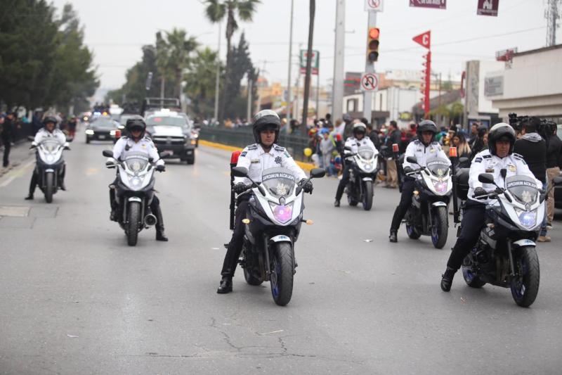 El Gobierno Municipal participó de manera activa al desfilar varias áreas de la Comisión de Seguridad y Protección Ciudadana, como la Dirección de Seguridad Pública y Tránsito, Protección Civil y Bomberos, así como personal del C2.