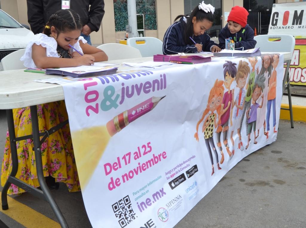 Piedras Negras.- Con una meta de participación de 14 mil niñas y niños de los municipios que comprende el Distrito 01, se realiza la Octava Consulta Infantil y Juvenil 2018, donde los menores coahuilenses pueden expresar su opinión sobre dos ejes centrales: La perspectiva de género y los derechos de los niños.