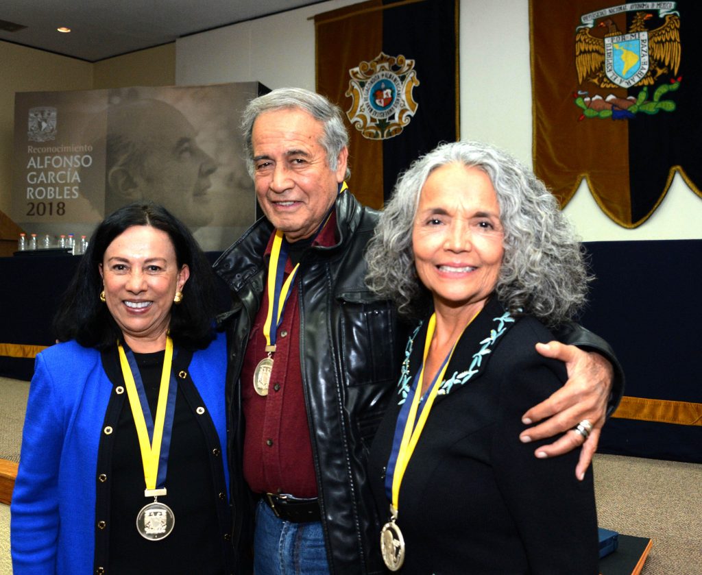 El rector Enrique Graue Wiechers impuso la medalla, y dio el diploma del galardón que lleva el nombre del “Padre del desarme nuclear en América Latina” y Premio Nobel de la Paz 1982, a Isabel García, codirectora de la Coalición de Derechos Humanos de Arizona; a Antonia Hernández, presidenta y directora ejecutiva de la California Community Foundation; y al padre Pedro Pantoja Arreola, fundador de la Casa del Migrante de Saltillo, que aloja a cerca de seis mil personas al año.