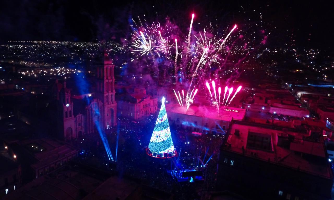 Niños y niñas de la mano de sus padres, y adultos mayores, presenciaron un show de luces, bailes musicales de duendes y disfrutaron la presencia de personajes encabezados por Santa Claus, quienes conformarán los carros alegóricos en los próximos desfiles, así como fuegos artificiales, durante el encendido del pino, que tiene una altura de más de 30 metros, cuenta con luces, estrellas luminosas, moños, cajas de regalos y esferas de variados tamaños y adornos, que dan ambiente de luz y magia.