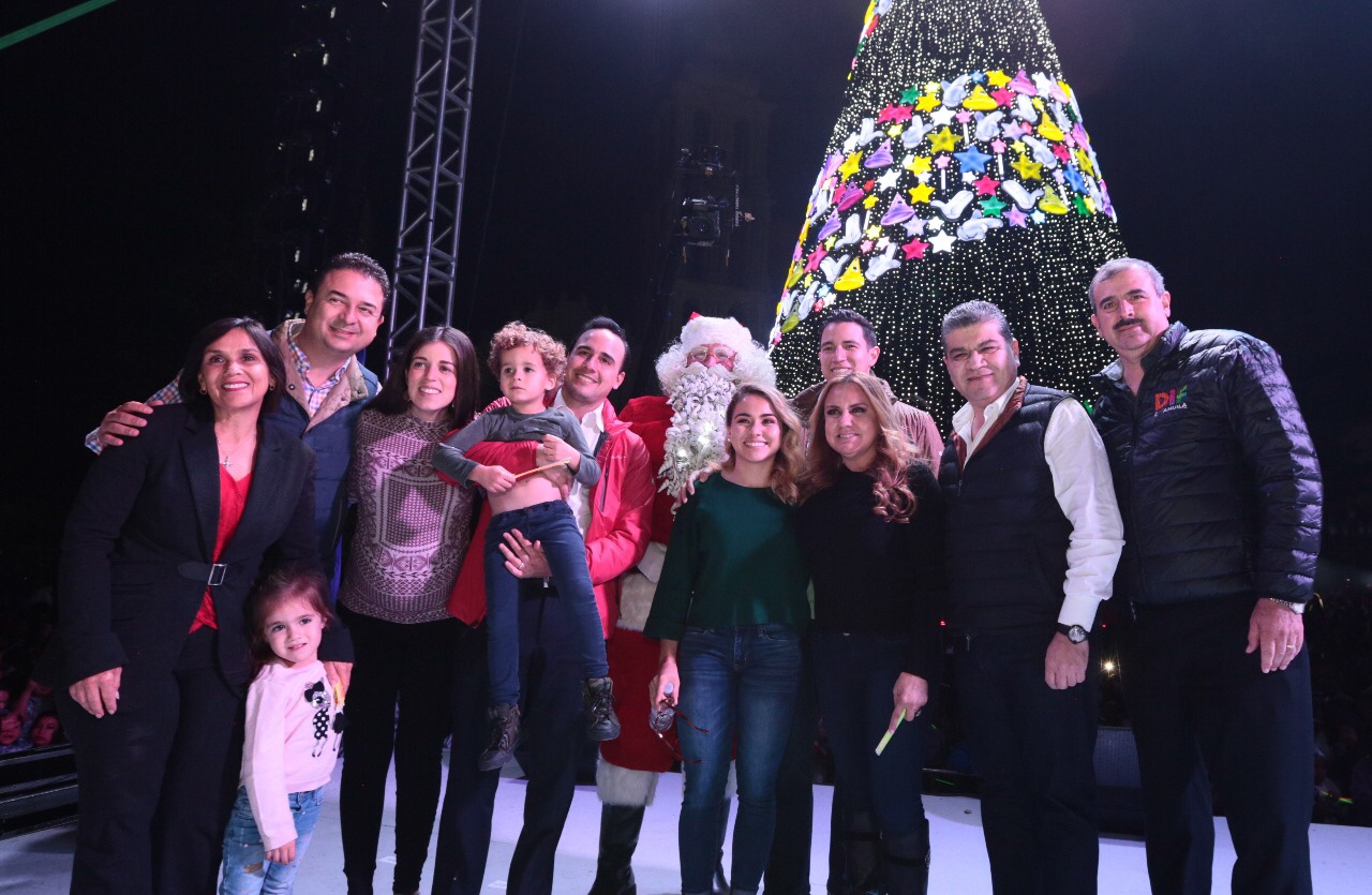 Junto a miles de familias coahuilenses que se congregaron en la Plaza de Armas, el gobernador Miguel Riquelme, acompañado de su esposa, la Presidenta Honoraria del DIF Coahuila, Marcela Gorgón, y su hija Graciela Riquelme Gorgón, encendieron el Pino de Navidad en esta ciudad, y con ello dieron inicio a los eventos navideños que se llevarán a cabo en todo el estado para deleite de los niños, niñas y el goce de las familias, en unidad en esta gran época del año.