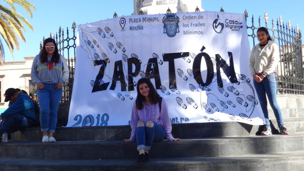 Con la solidaria intención de apoyar a la Casa del Migrante para brindar calzado digno para sus huéspedes temporales, el colectivo Acción Juvenil Saltillo realiza por tercera edición su Zapatón 2018, proyecto que invita a la ciudadanía en general a regalar zapatos en buen estado, para ser entregados a personas extranjeras con necesidad de un par nuevo, esto al reconocer que durante su caminar, muchas veces dirigido a cruzar la frontera con Estados Unidos, terminan incluso descalzos.