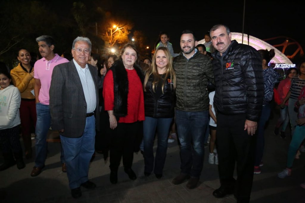 Al realizar el corte del listón, los pequeñitos, padres y madres de familia presenciaron de manera emotiva fuegos artificiales, y posteriormente algunos de ellos se colocaron los patines para disfrutar de la pista, una de las principales atracciones navideñas de “Coahuila Luz y Magia”.