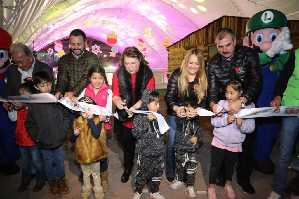 Inauguran Marcela Gorgón y alcaldesa Lilia Flores la pista de hielo