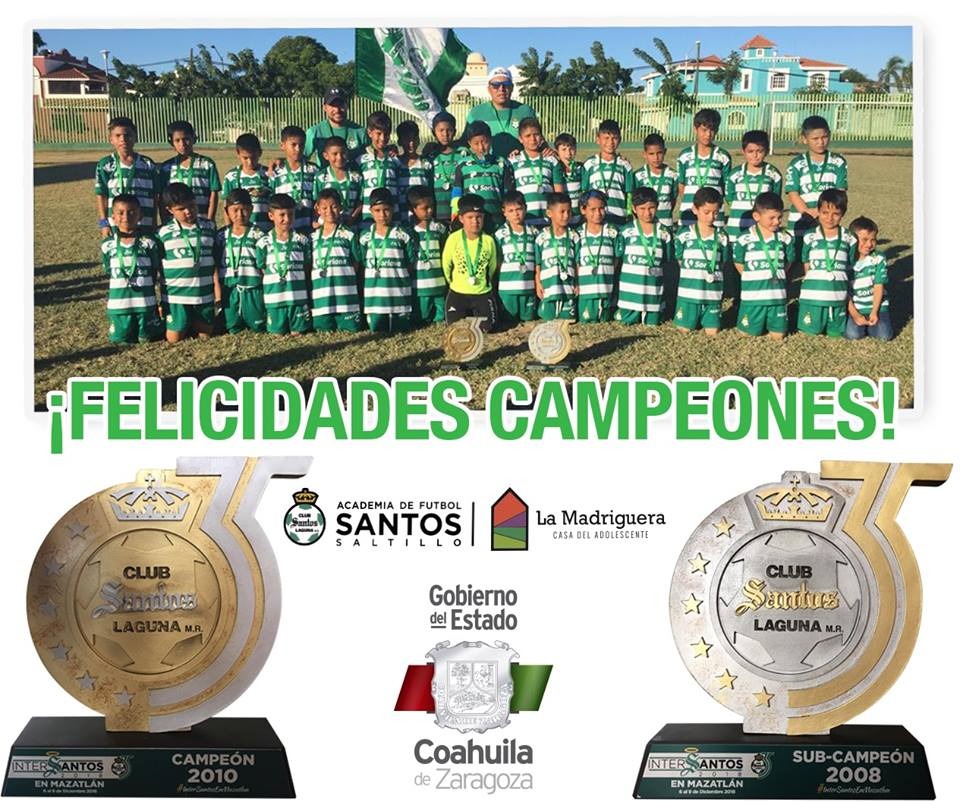 Las escuelas del Club Santos en “La Madriguera” de Saltillo, regresaron triunfantes de la Copa Inter Santos, realizada en Mazatlán: La Categoría 2010 resultó Campeón, y la 2008 se trajo el Subcampeonato.