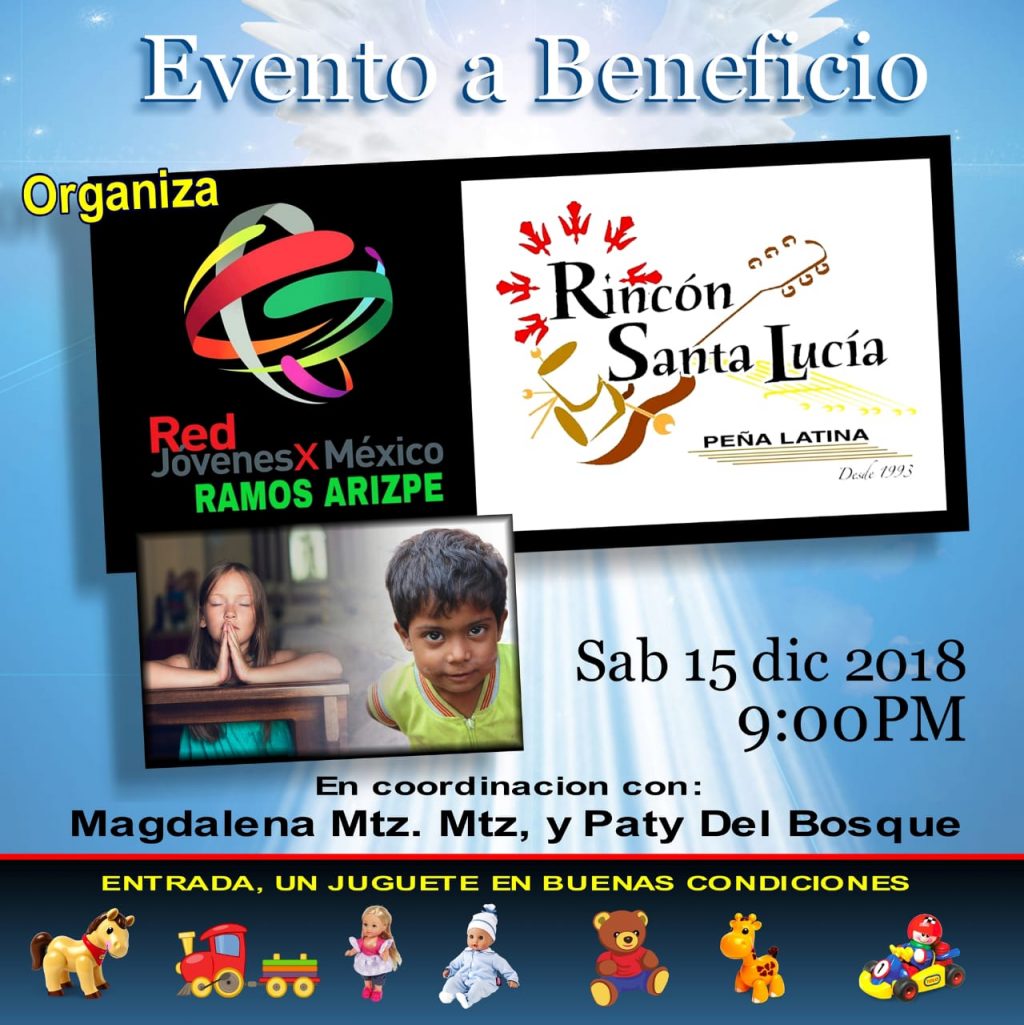 El evento se realizará el próximo 15 de diciembre a las 9 de la noche en el Rincón Santa Lucía, ubicada en Pedro Figueroa en la ciudad de Saltillo. Cabe mencionar, que en lugar de llevar algún donativo en especie, puede asistir al evento y pagar su boleto de entrada, el cual será donado a la causa por el dueño de este establecimiento. (GABRIEL MARTINEZ)