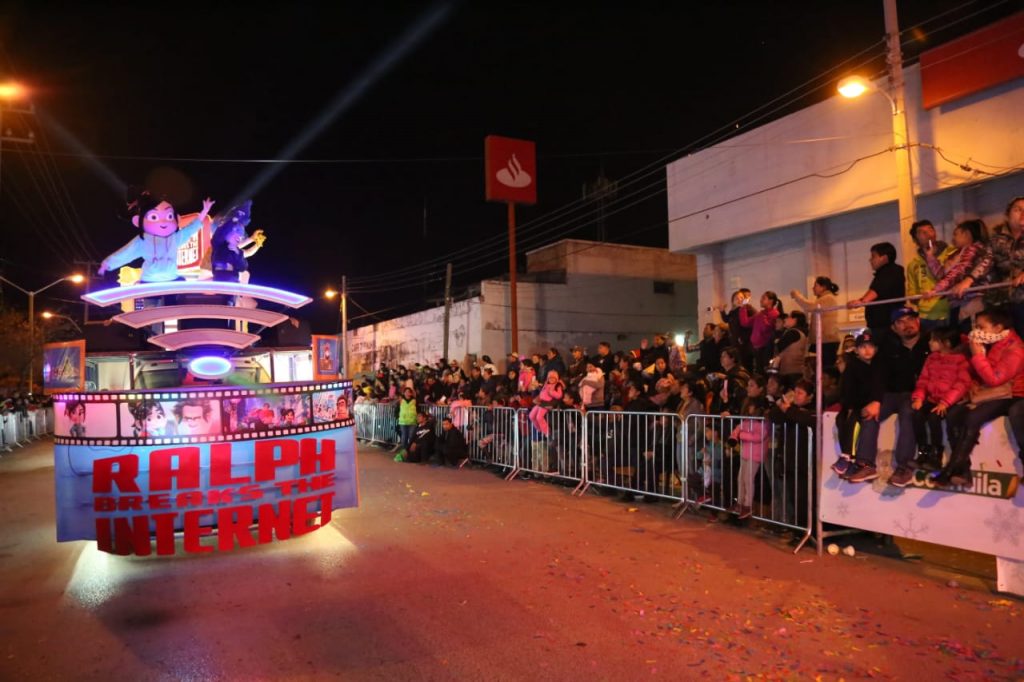 Niños y niñas acompañados por sus familiares disfrutaron de la pirotecnia que iluminó el cielo de San Juan de Sabinas, despertando en ellos las emociones de ver también el trineo de Santa Claus, con sus duendes bailarines, mientras en los adultos se despertaron los aplausos al presenciar los carros alegóricos con los personajes de diversas caricaturas infantiles.