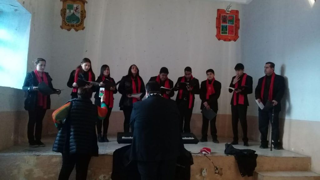Saltillo.- A fin de continuar llevando la música tradicional navideña a los diversos municipios de Coahuila, la Secretaría de Cultura del Estado (SC) presentó en el Auditorio de la Presidencia Municipal de General Cepeda, el Ensamble Vocal 38.