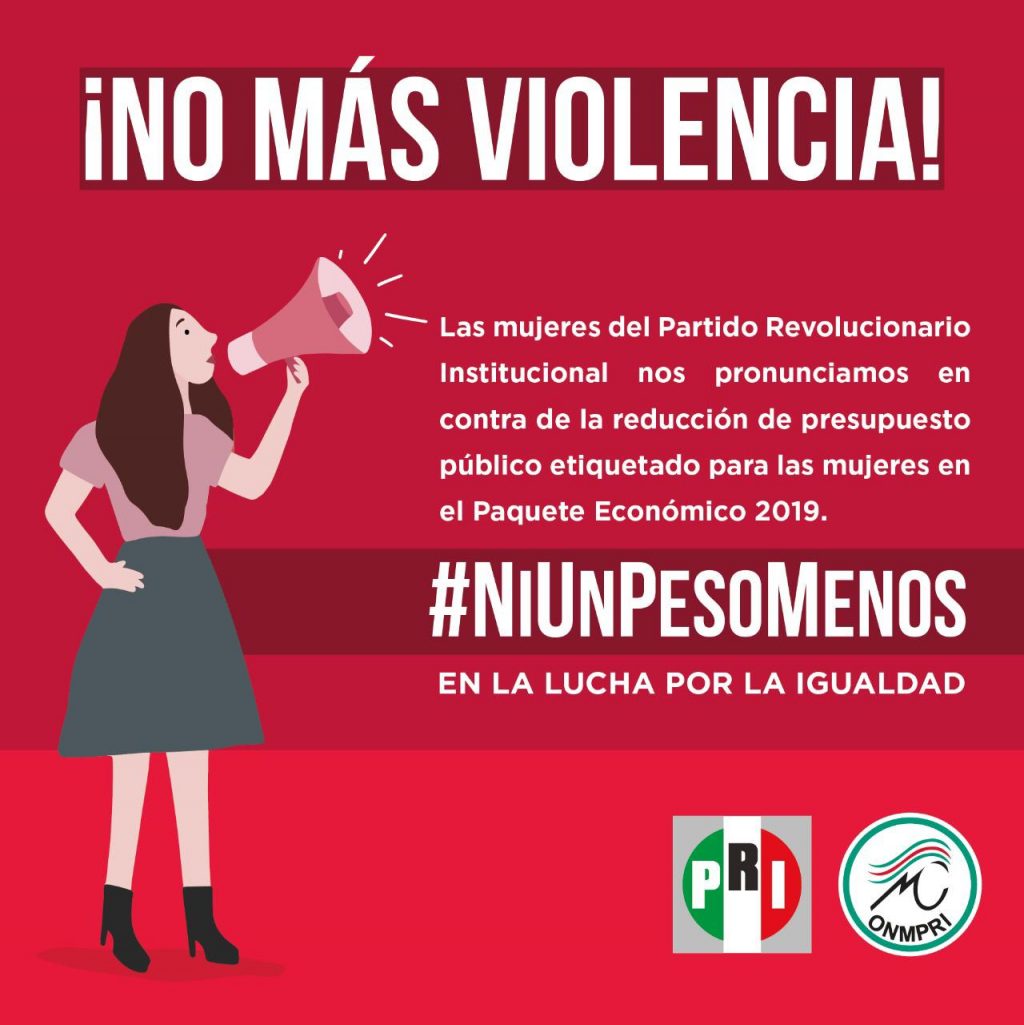 En el PRI levantamos la voz por los derechos de las mujeres, en los logros alcanzados ni un paso atrás bajo ningún pretexto, ni un peso menos en el presupuesto para las mujeres”, señala finalmente. (EL HERALDO)