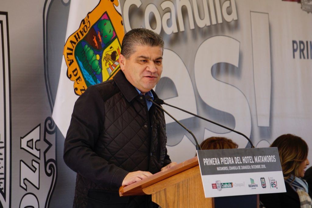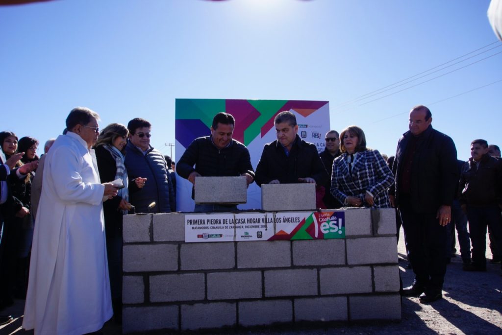 Matamoros, Coahuila.- El gobernador Miguel Ángel Riquelme Solís colocó la primera piedra de las construcciones en el Hotel Matamoros y La Casa Hogar “Villa de Los Ángeles”, además hizo el corte del listón de la remodelación de Las Ladrilleras, en este municipio.