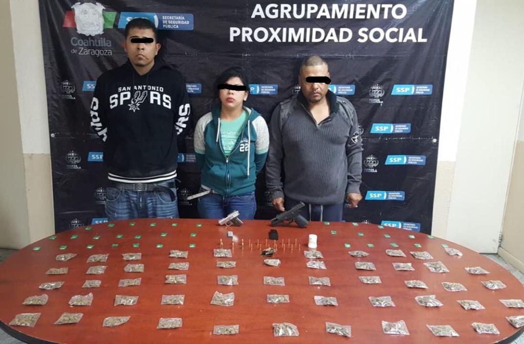 En un operativo del Grupo de Proximidad Social de la Secretaría de Seguridad Pública de Coahuila, se detuvo a tres personas en la Colonia Central, de Piedras Negras, en posesión de narcóticos y portación de armas de fuego.