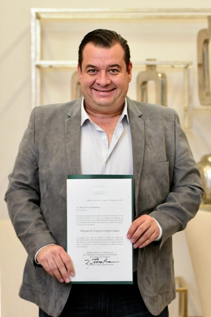 Torreón; 8 de Enero de 2019.- El gobernador Miguel Ángel Riquelme Solís nombró a Héctor Iván Estrada Baca como nuevo Delegado de Transporte en la Región Laguna.