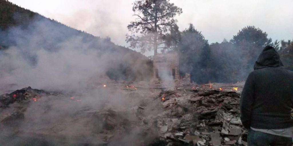 Una cabaña terminó reducida a cenizas tras registrarse un incendio en el ejido Los Lirios.