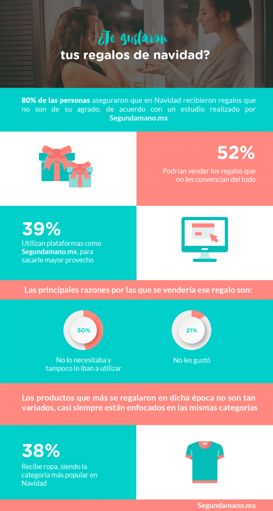 Ciudad de México.- Después de la euforia que causan las compras decembrinas y de haberte roto la cabeza por regalar el obsequio perfecto, te tenemos una noticia: 80% de las personas aseguraron que en Navidad recibieron regalos que no son de su agrado, de acuerdo con una investigación realizada por Segundamano.mx.