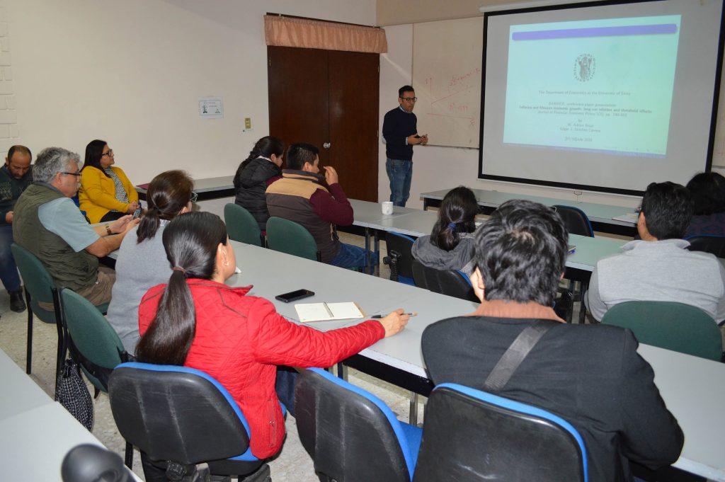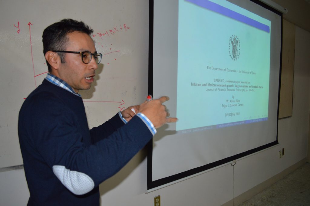 El Centro de Investigación en Matemáticas Aplicadas de la Universidad Autónoma de Coahuila, llevó a cabo la presentación de la conferencia “Inflation and Mexican Economic Growth: Long run relation and threshold efeccts”, a cargo del Dr. Edgar Sánchez Carrera en el marco del Seminario de Integración de las Matemáticas.