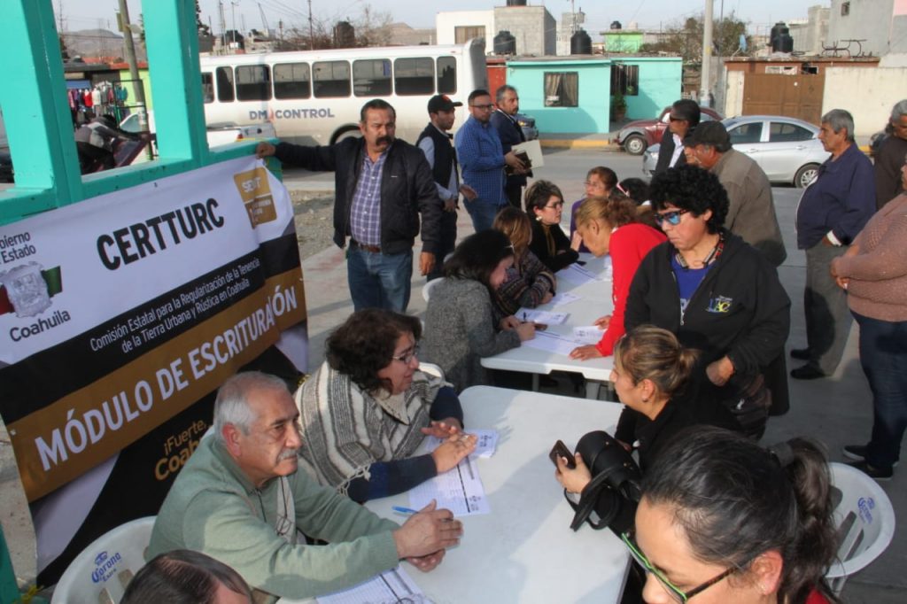 Con el objetivo de dotar de una garantía plena y certeza jurídica a los coahuilenses sobre sus propiedades, y avanzar en la regularización de la tenencia de la tierra, el gobernador Miguel Ángel Riquelme Solís instruyó a la instalación de módulos en las colonias de Saltillo para apoyar en el trámite de escrituras.