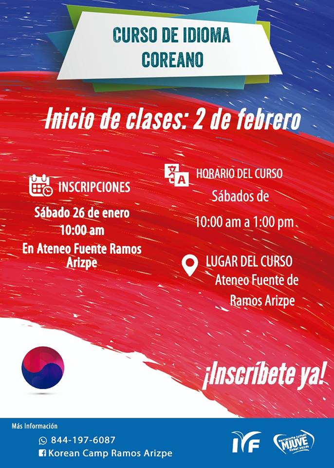 Francisco Orosio Madrid, fundador del Movimiento Juvenil Ramos Arizpe, en coordinación con la Fraternidad Internacional de Jóvenes, anunciaron la apertura del proceso de inscripciones al curso a bajo costo del idioma coreano en Ramos Arizpe.