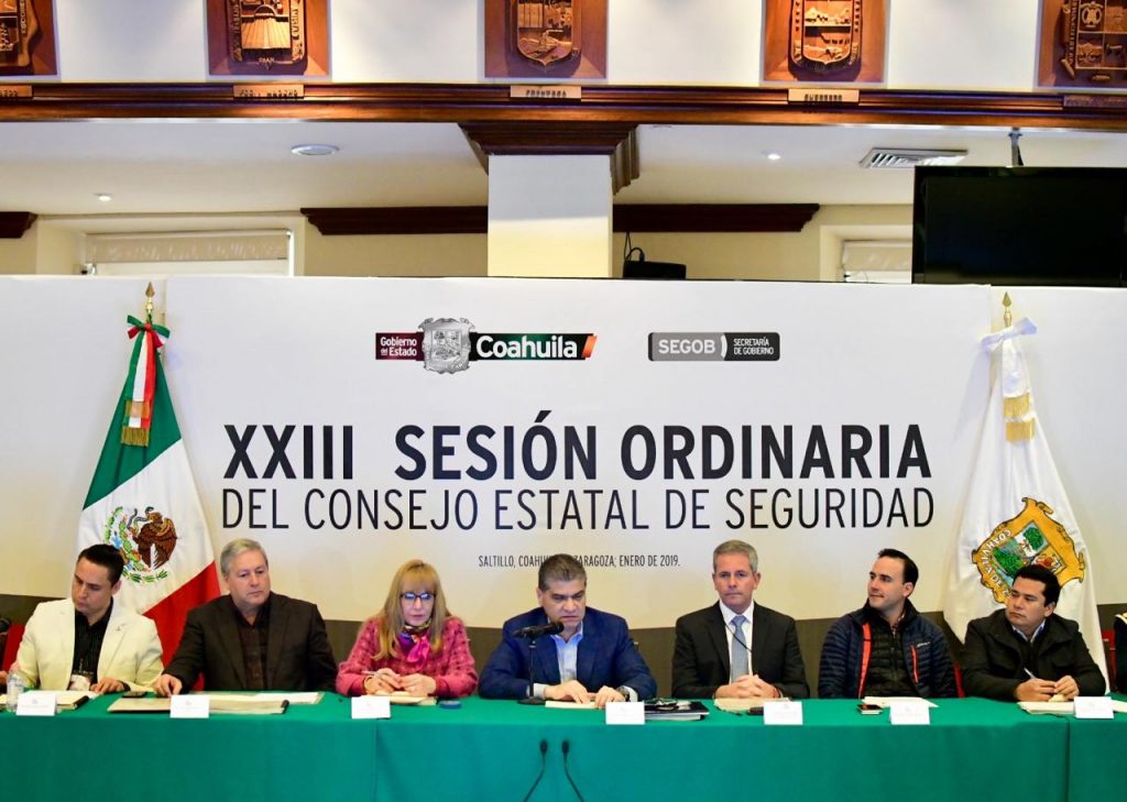 Así, el Mandatario de Coahuila refrendó el compromiso del Estado para mantener el trabajo en conjunto por la seguridad de los ciudadanos, al encabezar la XXIII Sesión Extraordinaria del Consejo Estatal de Seguridad.