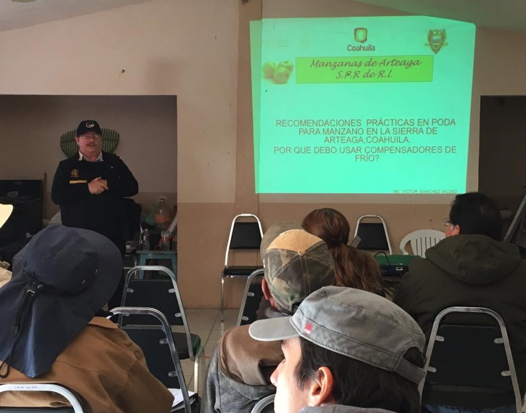 “Hoy tuvimos en el ejido Jamé, del Municipio de Arteaga, un taller de planeación estratégica y otro de técnicas de poda y usos de compensadores de frío, dirigido a productores de manzana, asociados y colaboradores de la Unión de Manzaneros de la Sierra de Arteaga”, abundó.