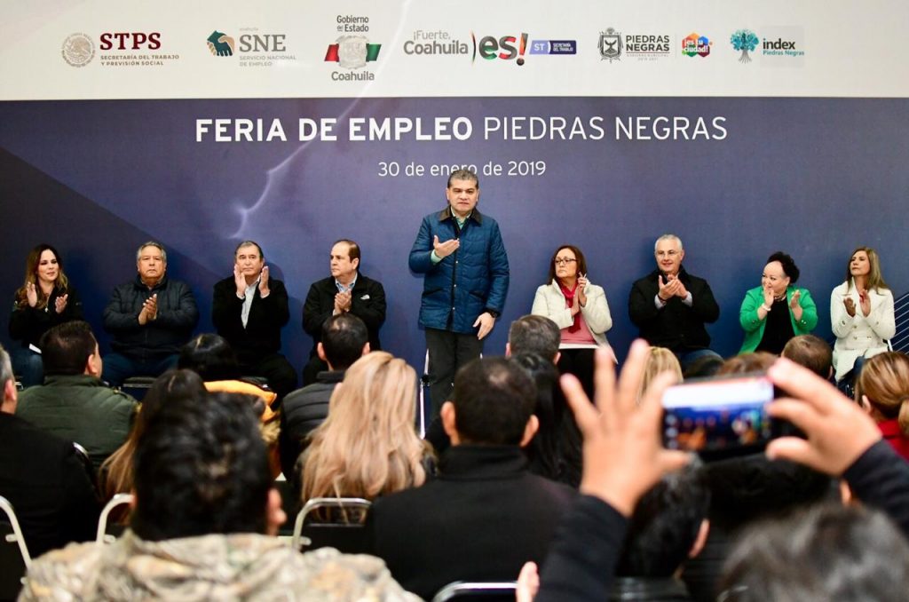 Piedras Negras.- Más de 800 fuentes de trabajo ofertaron un total de 23 empresas en la Primera Feria del Empleo celebrada en Piedras Negras, inaugurada por el gobernador Miguel Ángel Riquelme Solís.