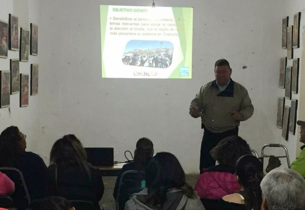 A través de la Dirección de Capacitación y Certificación Turística se efectuó el curso, donde se abordaron temas sobre cultura turística, historia de Coahuila y del municipio, geografía, cultura general como música, artesanía, gastronomía y bailes típicos.