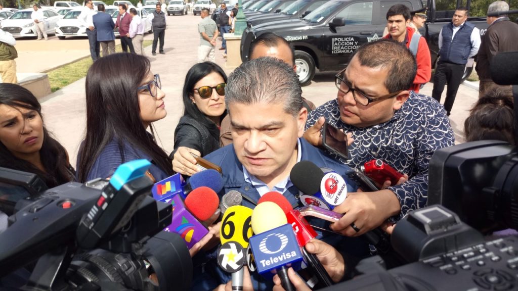 Miguel Riquelme señaló lo anterior en entrevista, luego de encabezar este miércoles la entrega de más de cien patrullas a la Fiscalía General del Estado, así como a la Secretaría de Seguridad Pública y a la Policía Municipal de Saltillo