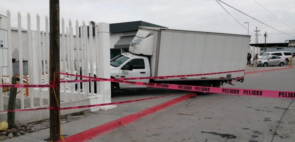 Antes de llegar al cruce con el libramiento Óscar Flores Tapia el chofer perdió el control y se precipitó contra la caseta de vigilancia de la referida fábrica en donde permanecían las tres personas quienes no alcanzaron a reaccionar a tiempo.