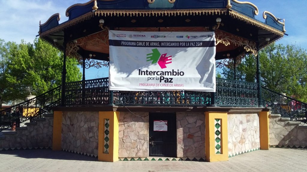 Después de que a principios de mes en la ciudad de Saltillo se diera el arranque oficial del programa de canje de armas “Intercambio por la Paz”, esta semana en Ramos Arizpe se habilitó el kiosco central de la Plaza Principal para dicha actividad.