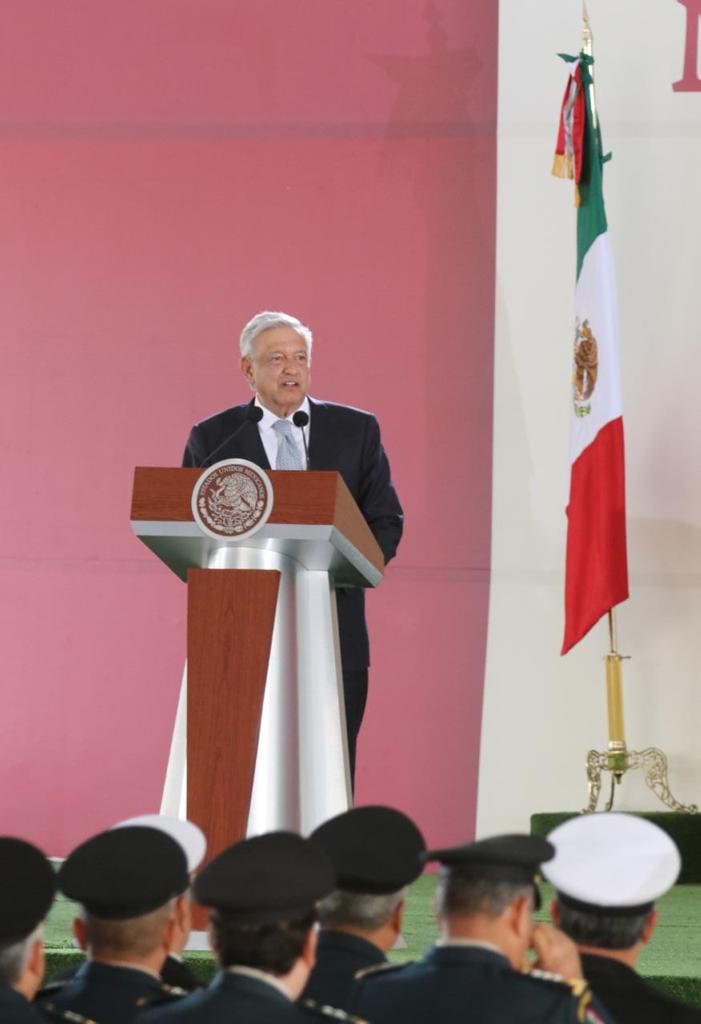 López Obrador dijo que el Ejército Mexicano se distingue de los ejércitos de otros países del mundo, por actuar siempre con lealtad en el sentido más amplio de la palabra, no sólo a los altos mandos o a su presidente, sino también lealtad al pueblo y a la patria, sino también a sus principios e ideales.