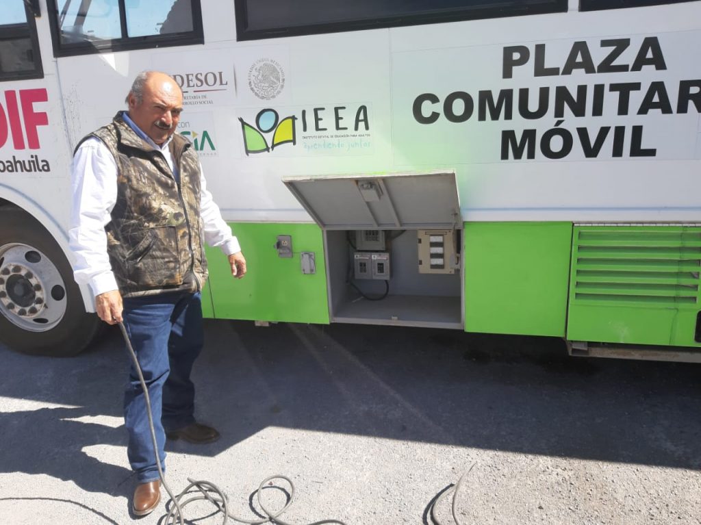 Monclova.- El Gobierno del Estado, a través del Instituto Estatal de Educación para los Adultos (IEEA), llevó a cabo la entrega de una unidad de “Plaza Móvil Comunitaria”, que está equipada con tecnología de punta y que permitirá atender durante dos meses las comunidades rurales y urbanas en municipios de Ocampo y Cuatro Ciénegas.