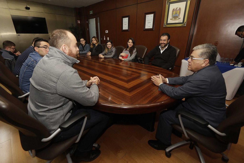 El Rector de la Universidad Autónoma de Coahuila, Salvador Hernández Vélez, se reunió con los diez estudiantes que viajarán a Austin, Texas para asistir del 21 al 23 de febrero a la Conferencia de Liderazgo Estudiantil Hatton W. Sumners.