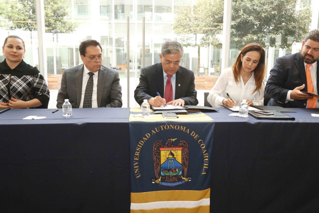 Entre estos convenios destacó el celebrado con la universidad AHMSA, mediante el cual se han ofrecido diplomados, maestrías y especialidades, así como con el Tribunal Superior de Justicia de Coahuila, y otro más que está en proceso de concretarse con la Confederación de Trabajadores de México (CTM) para la creación de la Universidad Obrera, con la que se atenderán las necesidades educativas de los agremiados a esa organización.