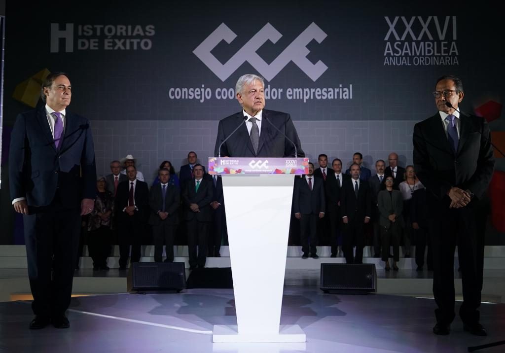 «Puedo decir que Carlos es un hombre honesto, una gente íntegra. Desde luego le tomo la palabra en sus dos propuestas, y agrego una: él plantea que hagamos el compromiso de que haya inversión para crecer al 4 por ciento, de acuerdo, trato hecho; dos, dice Carlos, hacer el compromiso para acabar con la pobreza en el sexenio, trato hecho. Como sé que va a coincidir conmigo, le hago una propuesta (…), una sola propuesta, para Carlos y para todos: que hagamos el compromiso de acabar con la corrupción», comentó López Obrador en la XXXVI Asamblea Anual Ordinaria del CCE.