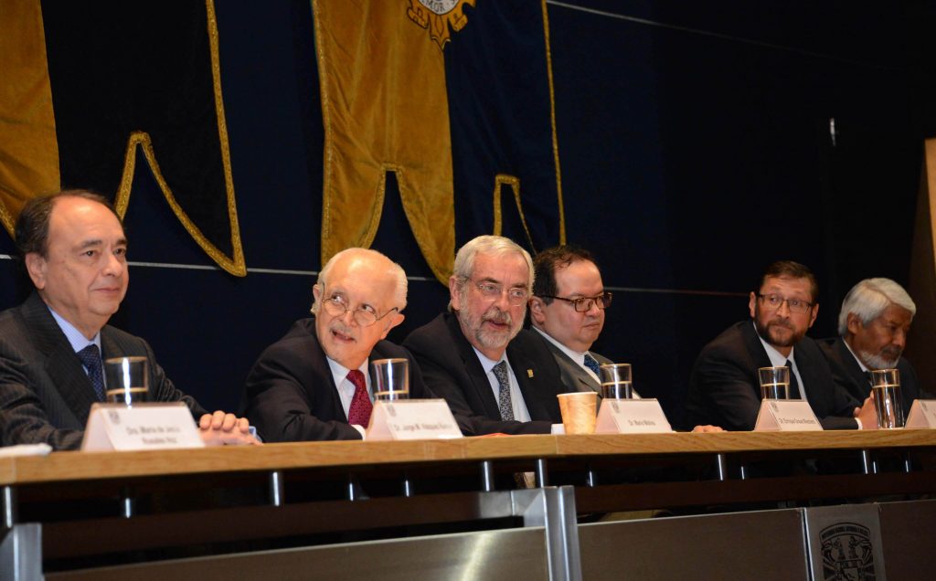 En la ceremonia estuvieron presentes el secretario general de la Universidad, Leonardo Lomelí Vanegas; el presidente de la Academia Mexicana de Ciencias, José Luis Morán; el exrector de la UNAM, Francisco Barnés de Castro; e integrantes de la Junta de Gobierno, entre otros. (UNAM)