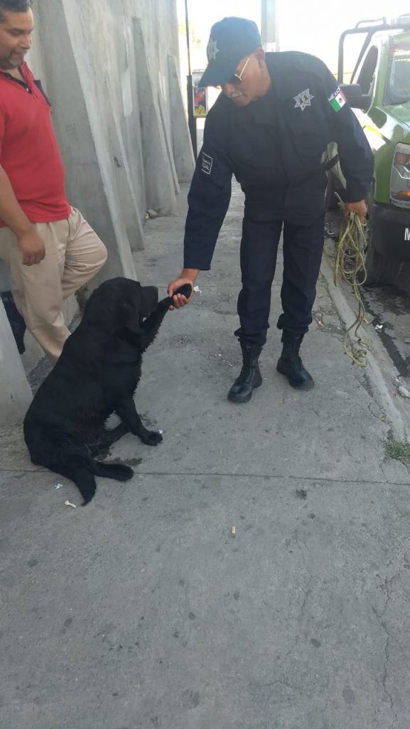 Elementos de la Policía Ambiental de Saltillo a bordo de la unidad M-1436 acudieron al lugar y auxiliaron al can reportado al teléfono 241.1000.