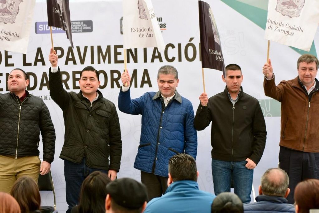 Múzquiz, Coah.- Con el compromiso de fortalecer las obras de infraestructura en la entidad, el gobernador Miguel Ángel Riquelme Solís puso en marcha en los municipios de San Juan de Sabinas, Sabinas y Múzquiz, obras de pavimentación por 38.9 millones de pesos.