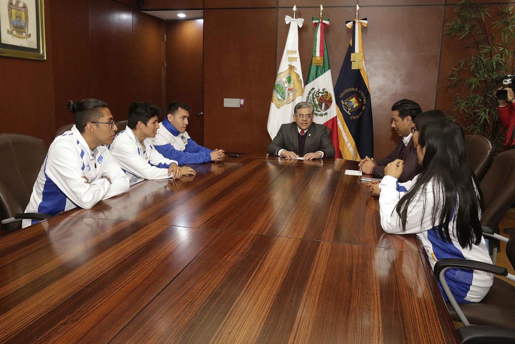 El rector de la máxima casa de estudios, Salvador Hernández Vélez, los recibió en su despacho para despedirlos a su viaje, al tiempo que los exhortó a aprovecharlo, no sólo en la disciplina deportiva que compiten, sino en aprender de la cultura, conocer nuevas personas y disfrutar su estancia en el país asiático.
