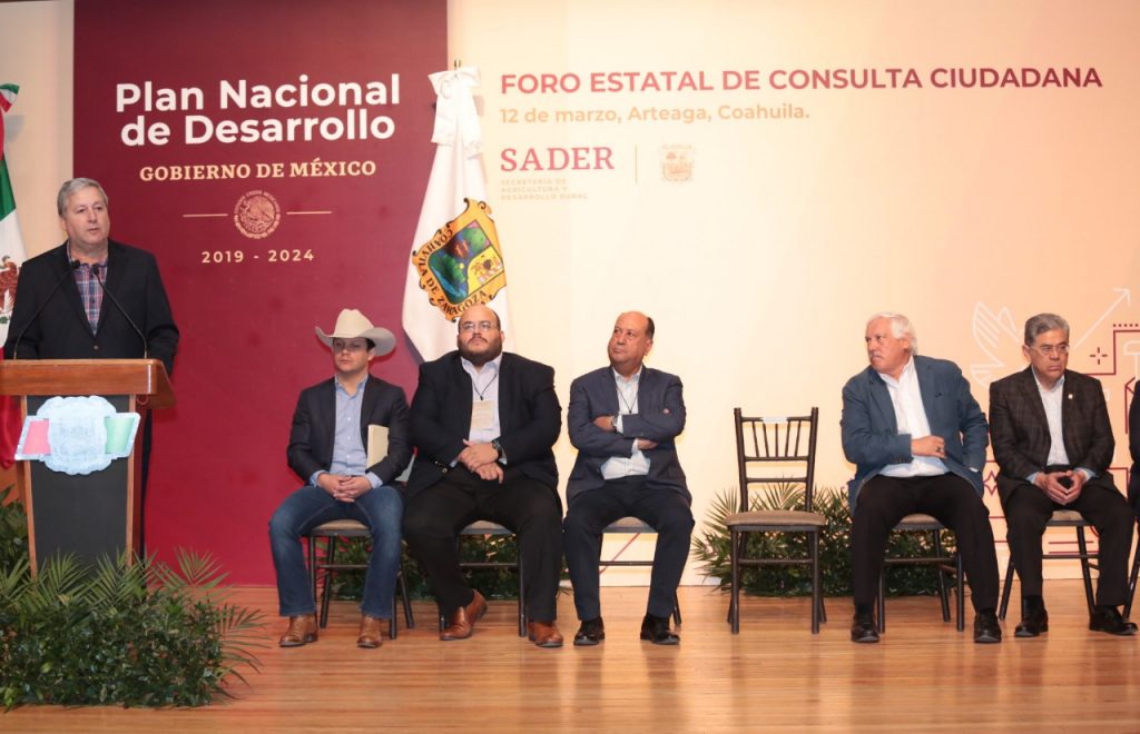 Arteaga, Coah.- En el marco del Sistema Nacional de Planeación Democrática se llevó a cabo la inauguración de los Foros Estatales de Consulta para la elaboración del Plan Nacional de Desarrollo 2019-2024 del Gobierno Federal, en el que estuvieron presentes Víctor Manuel Villalobos Arámbula, Secretario de Agricultura y Desarrollo Rural, y José María Fraustro Siller, Secretario de Gobierno del Estado de Coahuila.