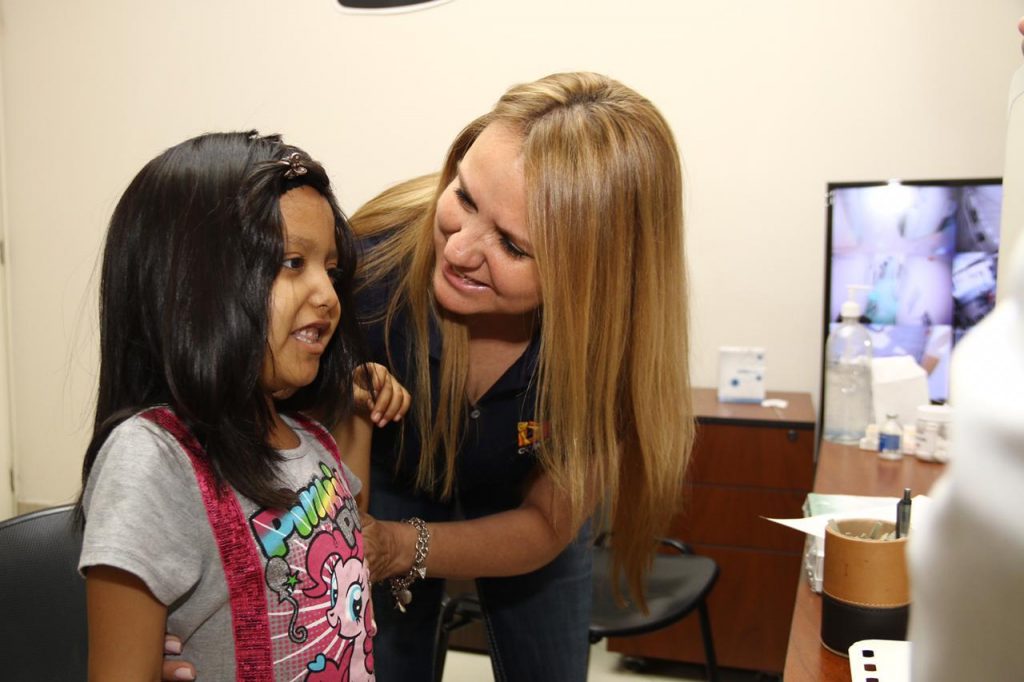 Acompañada de Carmen, su mamá, Nahomy llegó al Hospital General de Torreón, donde la esperaban la esposa del Mandatario estatal, la señora Marcela, Alma Rosa Lee y el Director y subdirector del nosocomio, Francisco Dorentes y Jorge Darwich.