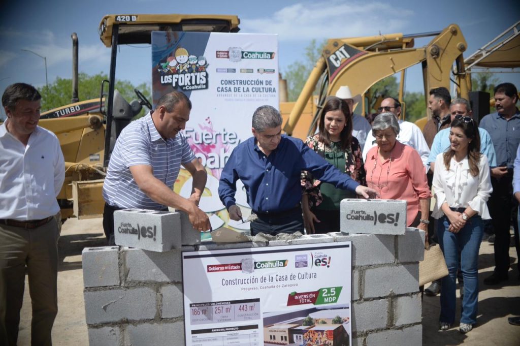 Progreso, Coah.- Con una inversión estimada en 2.5 millones de pesos, el Gobernador del Estado, Miguel Ángel Riquelme Solís, puso en marcha la construcción de la Casa de la Cultura.
