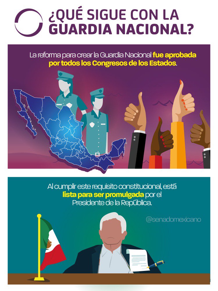 El miércoles pasado, 17 Congresos estatales aprobaron el dictamen para la configuración de la Guardia Nacional. Aunque eran mayoría y no necesitaban esperar al resto de las legislaturas locales, el presidente Andrés Manuel López Obrador sugirió el jueves a los legisladores que la declaratoria se hiciera hasta que todos los Congresos dieran su visto bueno a las reformas.